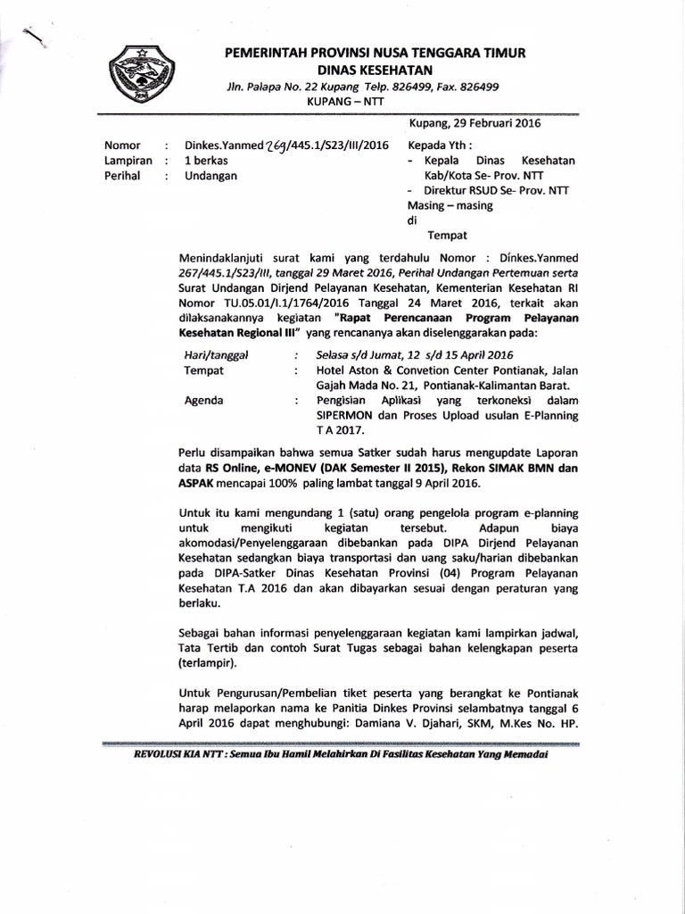 Http Www Jkn Kemkes Go Id Attachment Unduhan Undangan 20dinas 20kesehatan Pdf from Pemerintah propinsi daerah khusus ibukota bogor. Pada kesempatan yang lalu kita telah membahas banyak sekali contoh surat, salah satunya yaitu contoh surat penawaran dan pernyataan. Untuk lebih jelasnya mengenai surat dinas, pada artikel ini kami akan membahas secara tuntas mengenai surat dinas beserta contohnya. Kedinasan itu bukan hanya oleh pemerintah tetapi juga lembaga swasta. Surat undangan sendiri terdiri dari surat undangan resmi dan surat undangan tidak resmi. Surat dinas isinya ditujukan untuk keperluan kedinasan, baik pemerintah maupun swasta. Contoh surat dinas merupakan sebuah contoh surat resmi yang memuat berbagai hal yang menggunakan susunan dan sistem penulisan yang formal. Contoh surat dinas resmi sekolah setiap kegiatan sekolah yang bersifat resmi biasanya disertai dengan dikeluarkannya surat resmi.